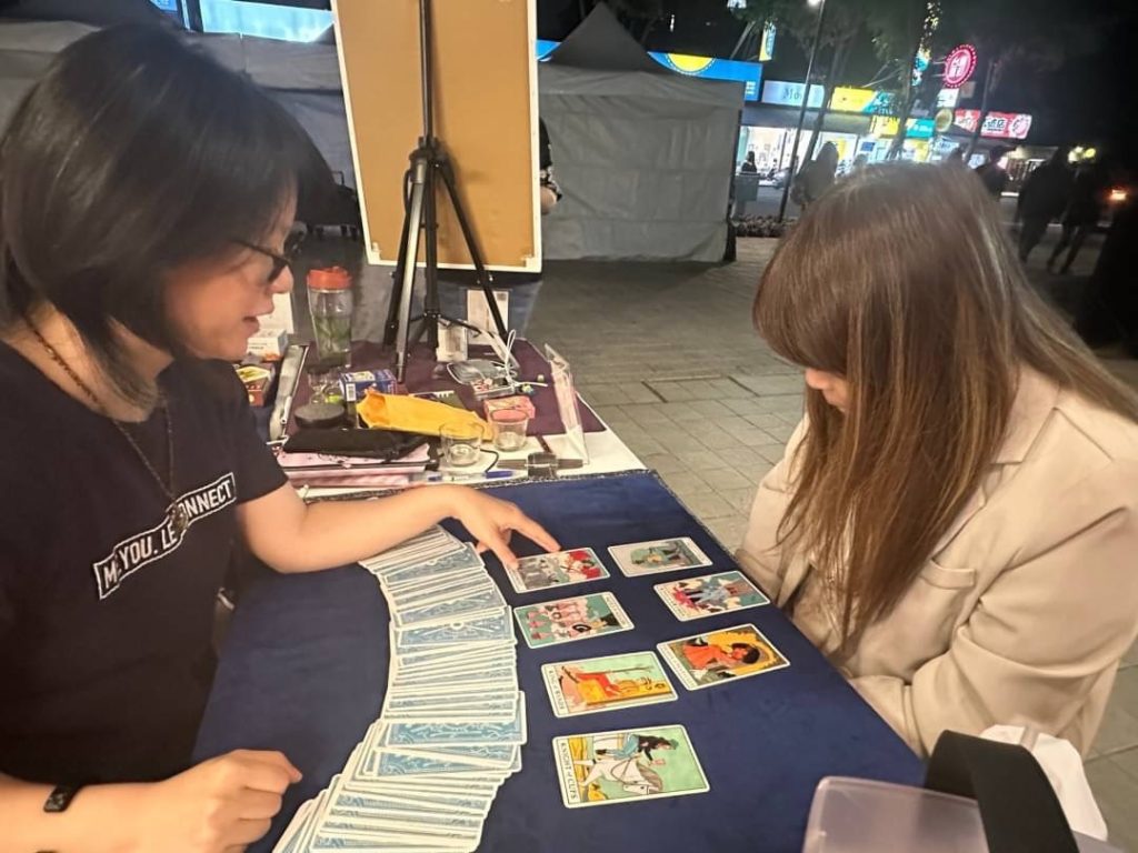這麼多年下來,身邊一直有老師、學長姐、同學可以討論牌意,讓自己的經驗累積的非常快,非常迅速。從以前懵懵懂懂不太肯定的解決,到現在可以很有自信地靈活運用牌面,在一天疲累的擺攤後,看見帳上的數字,那些疲累感瞬間消失。